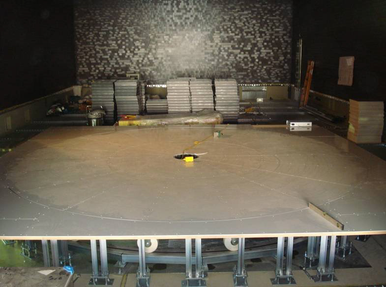 The turntable TT 4.0-4t is especially designed for flush mounted installation in semi anechoic electromagnetic absorption chambers. The carrier plate is made of stainless steel.